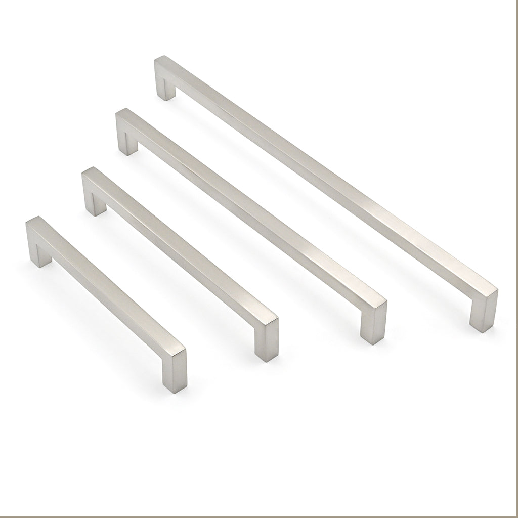 Our 175 series Bunbury cabinet handles feature a sleek, rectangular design with clean lines and a smooth satin nickel finish which bring a refined modern touch to any cabinetry project.
